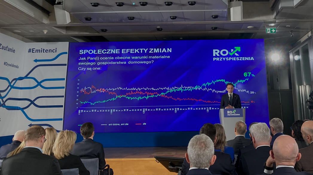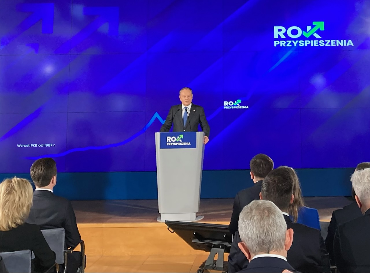 Dzisiaj o godz. 10 w siedzibie Giełdy Papierów Wartościowych w Warszawie rozpoczęło się wydarzenie „Polska. Rok przyspieszenia” z udziałem premiera Donalda Tuska oraz ministra finansów Andrzeja Domańskiego.