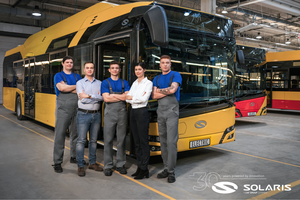 Solaris obchodzi w tym roku 30-lecie działalności. Od momentu, gdy w 1996 roku z hali produkcyjnej w Bolechowie pod Poznaniem wyjechał pierwszy autobus, firma rozwinęła się do poziomu jednego z najważniejszych producentów autobusów miejskich w Europie oraz lidera w segmencie pojazdów zeroemisyjnych. Autobusy i trolejbusy marki jeżdżą w setkach miast, a technologie elektryczne i wodorowe stanowią strategiczny kierunek rozwoju producenta. Solaris świętuje swój jubileusz, podkreślając, że jego siłą od zawsze byli ludzie – ich zaangażowanie, kompetencje i wartości, które od trzech dekad kształtują charakter firmy.